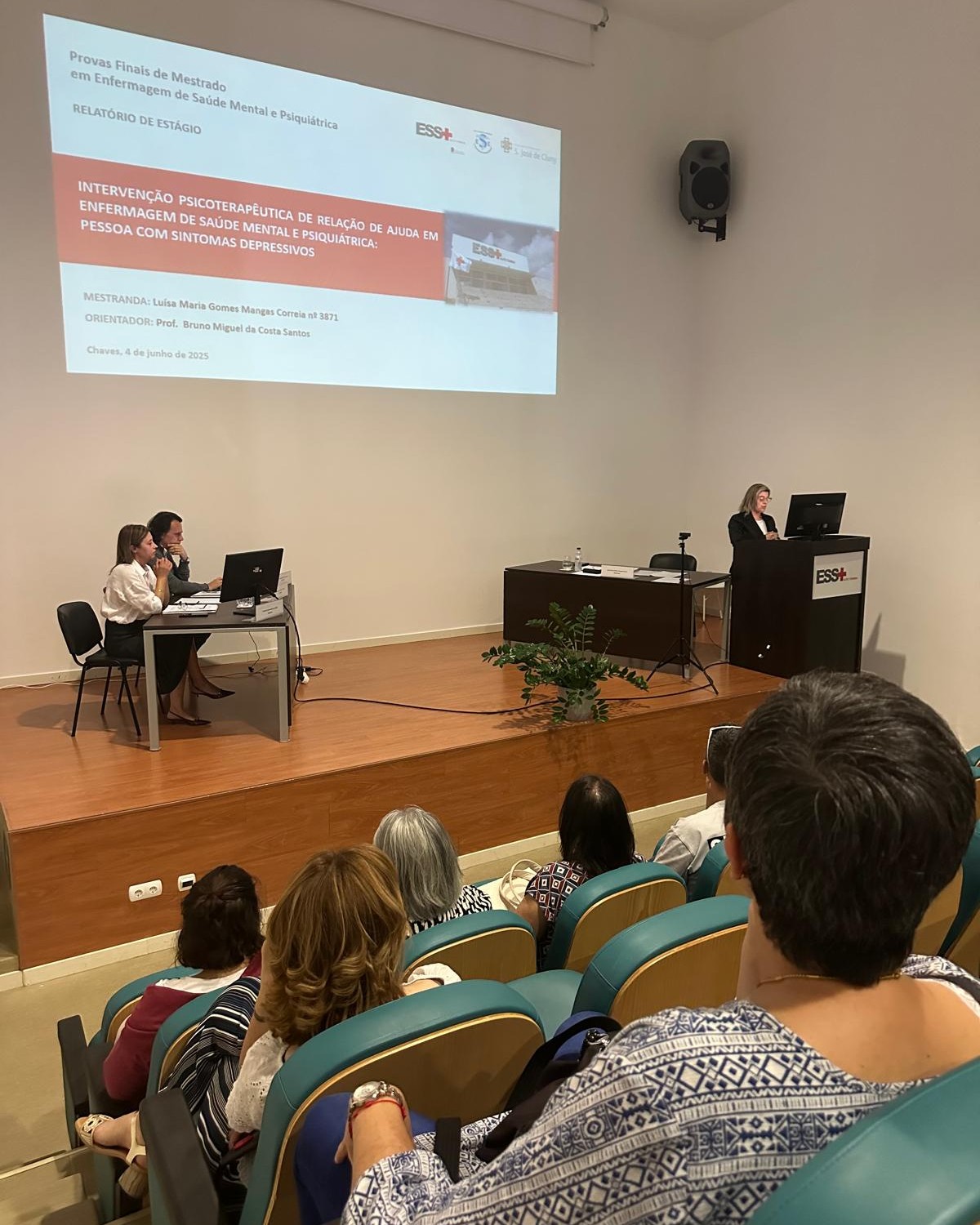 Decorreu, a 4 de junho de 2025, a defesa das provas públicas realizada no âmbito do curso de Mestrado em Enfermagem de Saúde Mental e Psiquiátrica, com a discussão do Relatório de Estágio Final intitulado "Intervenção Psicoterapêutica de Relação de Ajuda em Enfermagem de Saúde Mental e Psiquiátrica: Pessoa com Sintomas Depressivos", da autoria de Luísa Maria Gomes Mangas Correia.